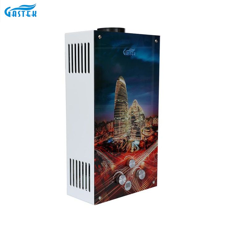 ہوم اپلائنس 6L 10L 12L فلو ٹائپ وال ماونٹڈ حسب ضرورت گلاس پینل ٹینک لیس انسٹنٹ گیس گیزر شاور نہانے کے لیے